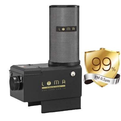 LOMA-採用美、德、日、台等多個國家的複合高效濾材及尖端應用技術。通過世界環保組織空氣品質標準。 "全球獨創五道過濾 " ,成功研發出高效能油霧回收機。可過濾機器加工中產生的水氣、油霧、油煙及異昧等多項介質。過濾攔截精度,業界居冠、品質卓越。獲得CE國際多項安全指令認證,並擁有多項多國專利肯定。