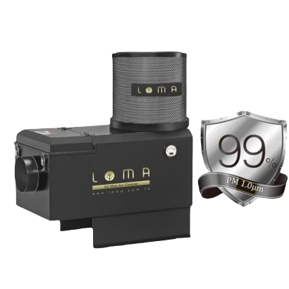 LOMA-採用美、德、日、台等多個國家的複合高效濾材及尖端應用技術。通過世界環保組織空氣品質標準。 "全球獨創五道過濾 " ,成功研發出高效能油霧回收機。可過濾機器加工中產生的水氣、油霧、油煙及異昧等多項介質。過濾攔截精度,業界居冠、品質卓越。獲得CE國際多項安全指令認證,並擁有多項多國專利肯定。
